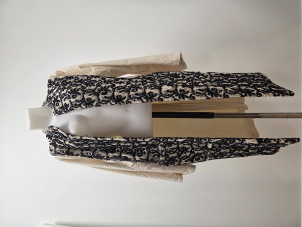 DRIES VAN NOTEN. Manteau ouvert en soie brodée de cannetilles...