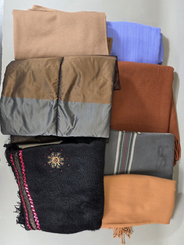 Ensemble de sept écharpes d'hiver en laine et matières synthétiques..