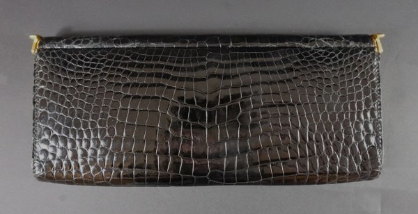 Une pochette en cuir noir et métal doré avec deux..