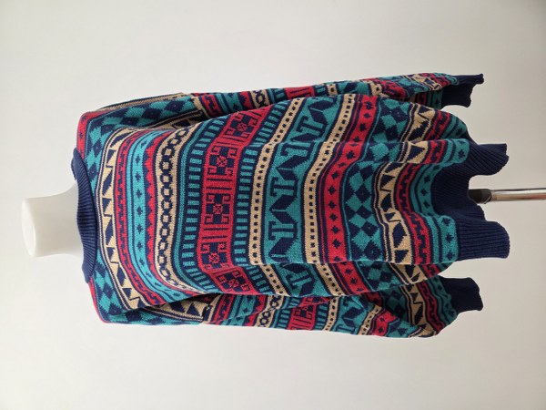 Christian DIOR. Pull en coton à motifs géométriques colorés sur..