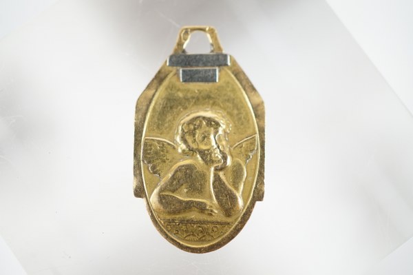 Une médaille en or jaune (750°°°) à décor d'un angelot..