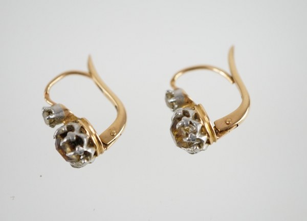 Paire de dormeuses en or de deux tons (750°°°) serties..