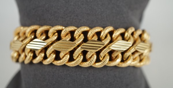 Bracelet à mailles torsadées en or jaune (750°°°). On y..