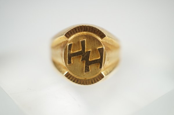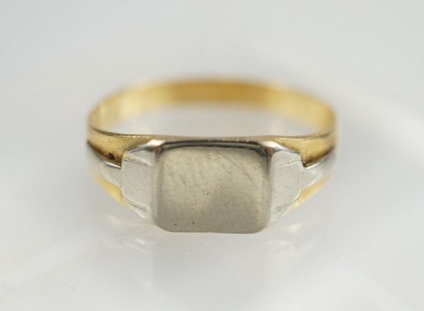 Une chevalière en or deux tons (750°°°). Non gravé. TDD..