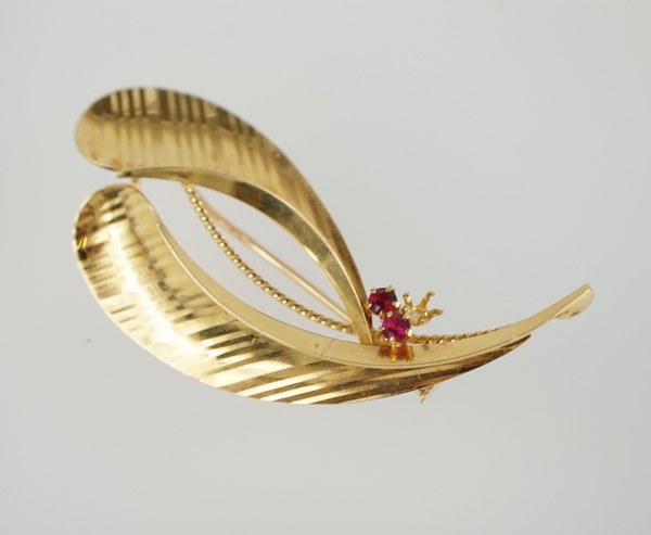 Une bague en or jaune (750°°°) serti d'une pierre rouge...