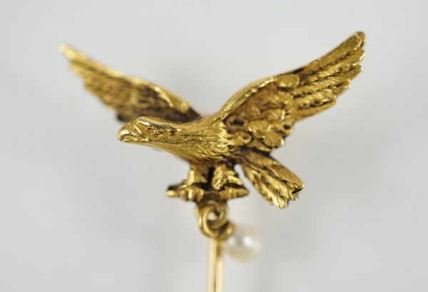 Une épingle à cravate en or jaune (750°°°) surmonté d'un..