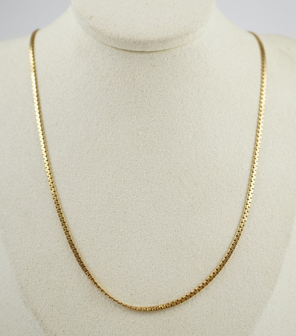 Un collier à petites mailles en or jaune (750°°°). Poids..