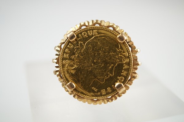 Bague en or jaune (750°°°) sertie d'une pièce de 10..