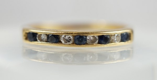 Bague en or jaune (750°°°) sertie de diamants et saphirs..