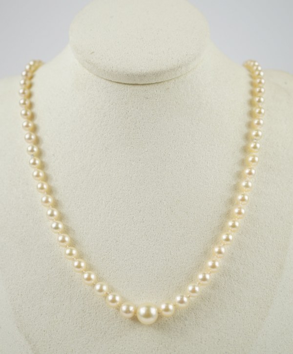 Un collier de perles à fermoir en or jaune (750°°°)...