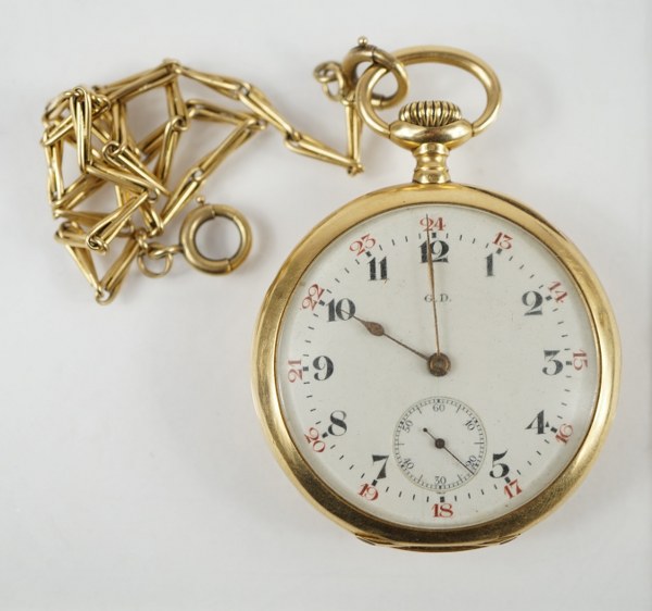 Montre gousset en or jaune (750°°°), monogrammée au revers, le..