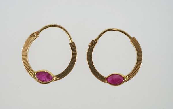 Paire de petites créoles en or jaune (750°°°) serties chacune..