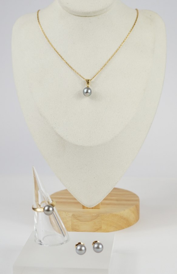 Parure en or jaune (750°°°) et perles de Tahiti comprenant..