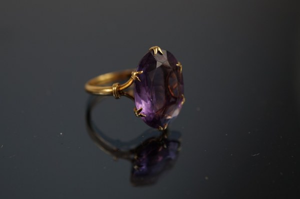 Bague en or jaune (750°°°) sertie griffe d'une améthyste. TDD..