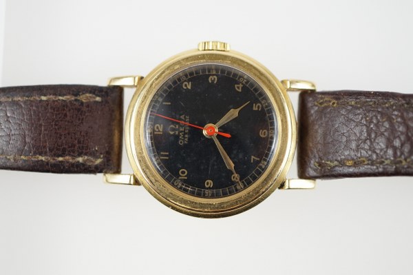 OMEGA. Montre à boitier rond en or jaune (750°°°), cadran..
