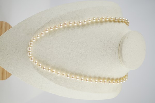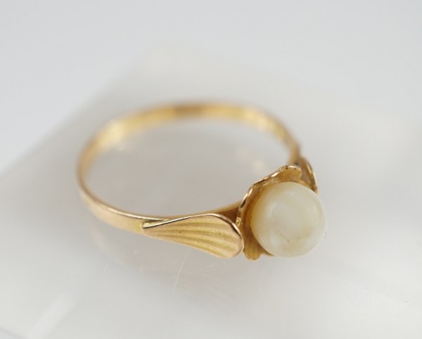 Une bague en or jaune (750°°°) surmontée d'une perle. TDD:..