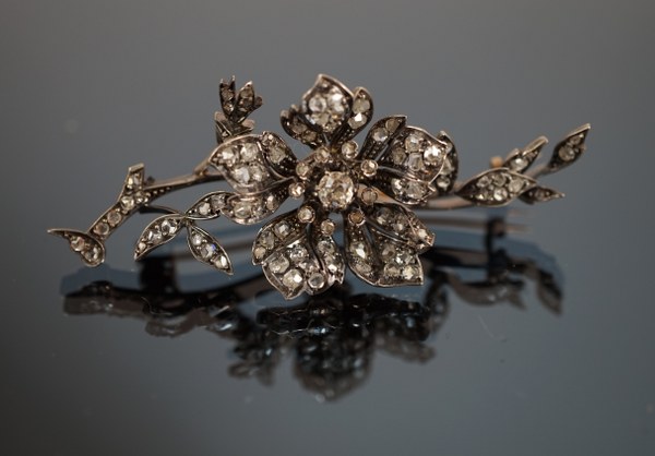 Broche trembleuse en or (750°°°). Figurant une fleur centrale et..