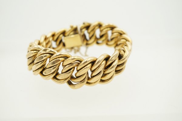 Bracelet à mailles américaines en or jaune (750°°°). Poids :..