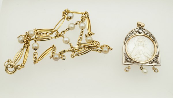 Broche formant pendentif en or jaune (750°°°) et argent (800°°°)..