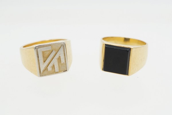 Deux chevalières en or jaune (750°°°), dont une sertie d'un..