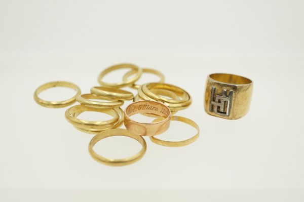 Lot d'alliances en or jaune (750°°°). Poids : 38,5 gr...