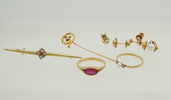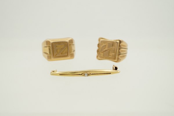 Lot de deux chevalières et un élément de broche en..
