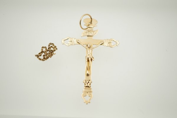 Partie de chaîne en or jaune, croix en or jaune..