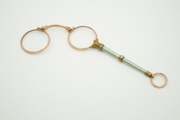 Paire de lorgnons en or jaune (585°°°) et émail.