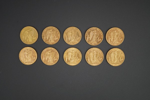 Dix pièces en or de 20 francs au génie entre..