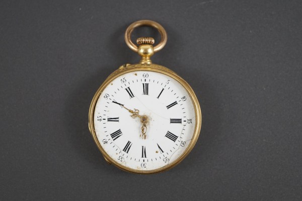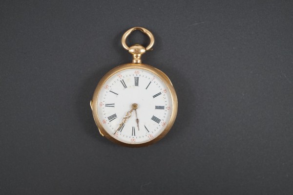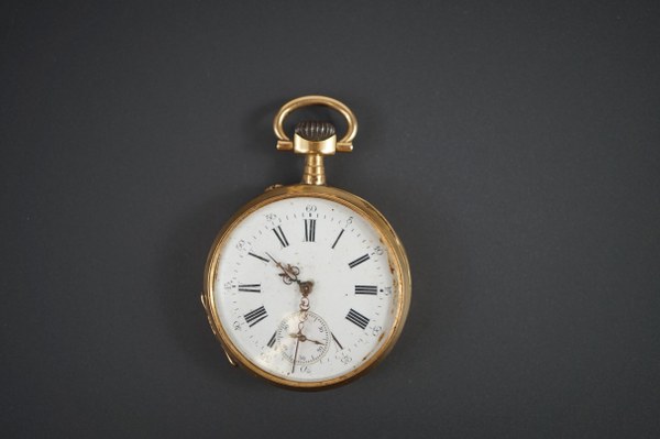 Montre à gousset en or jaune (750°°°), cadran à chiffres..