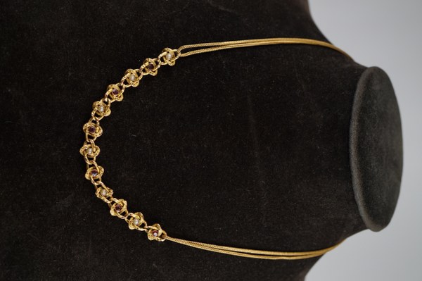 Collier en or jaune (7500°°°) ornée de petits rubis et..