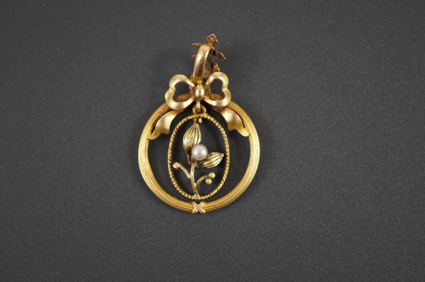 Pendentif perle surmonté d'un nœud et bélière à décor de..