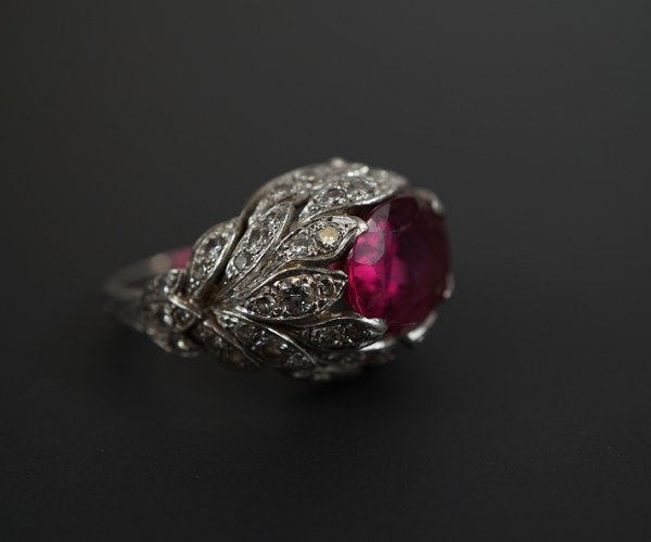 Bague en platine 850 millièmes, ornée au centre d'une tourmaline..
