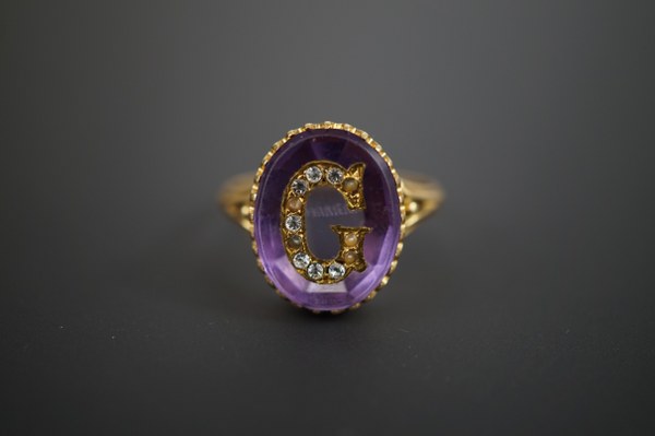 Bague en or jaune (750°°°) ornée au centre d’une améthyste..