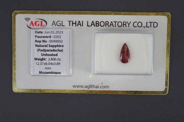 Saphir naturel du Mozambique de 2.408 carats, de forme poire,..
