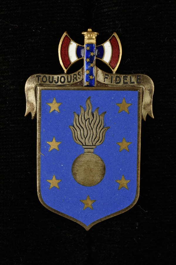 Cet insigne est en métal émaillé avec francisque tricolore surmontant..