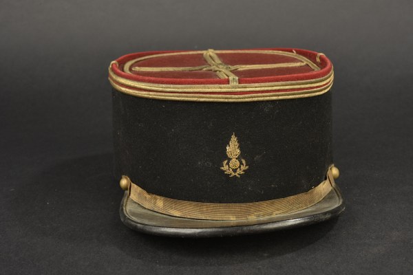 Képi 1935 d'officier d'administration. Bandeau en drap noir et plateau..