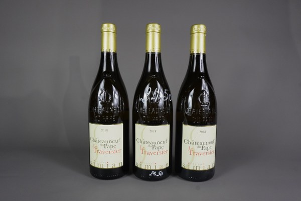 3 bouteilles CHATEAUNEUF DU PAPE, Château Simian, Le Traversier, 2018.