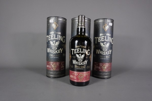 Lot de 3 bouteilles WHISKEYS SINGLE MALT Teeling Whiskey, crystal..