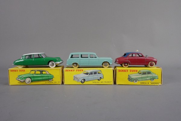 Dinky Toys, lot de 3 voitures en boite (usures) n°24..