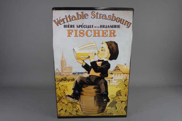 Reproduction de plaque émaillée en tôle de la bière Fischer...