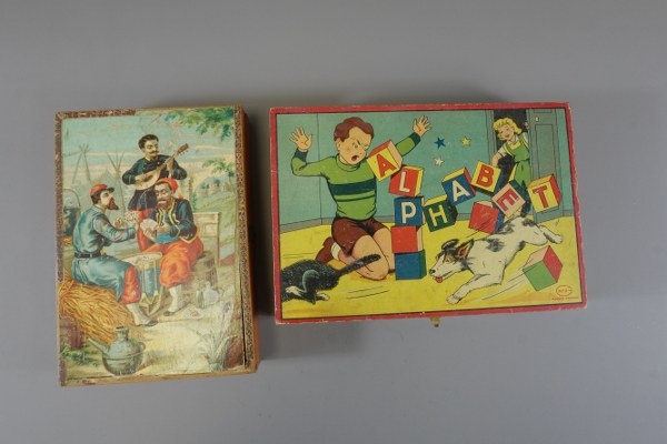 2 Boites de jeux de cubes XIXème. L' alphabet et..