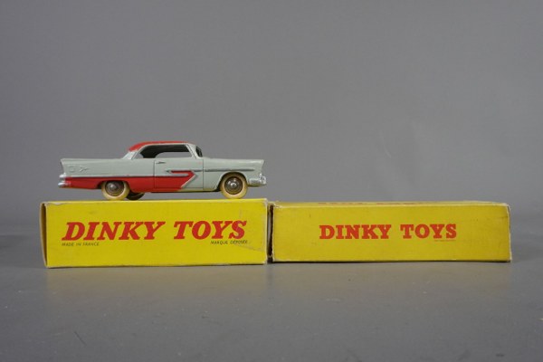 Dinky Toys, n° 24D en boite défraichie Plymouth Belvedere et..