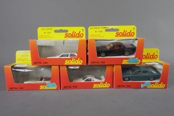 1/43ème Solido, lot de 5 voitures en boite défraichie n°..