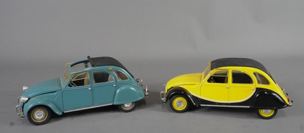 Ensemble de deux voitures Citroën 2 CV Solido. Petits manques.