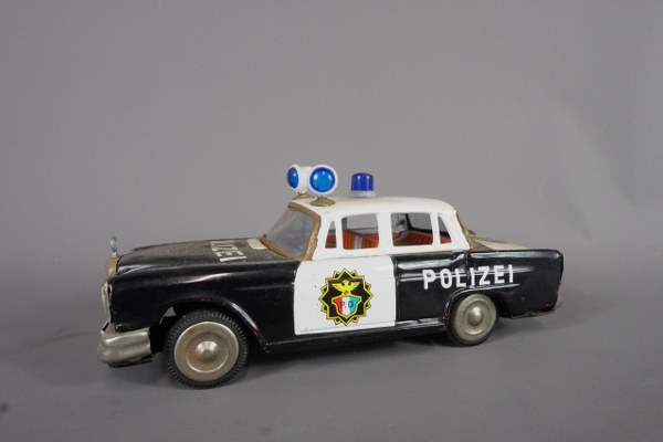 1/24ème Voiture Mercedes Polizei mécanique à friction en tôle lithographiée.