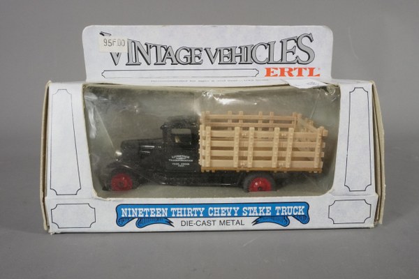 1/43ème ERTL, vintage véhicules 1930 Chevy Stake Truck dans sa..
