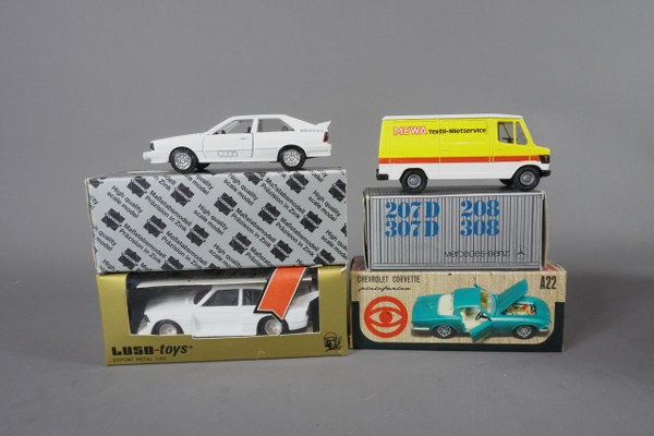 1/43ème, lot de 4 voitures en boite dont Luso Toys..