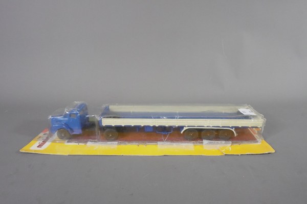 Minimac, Tracteur routier avec sa semi-remorque bleue dans son emballage..