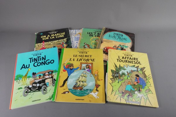 Hergé, lot de 21 albums de Tintin (accident à la..